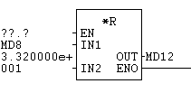 Es ist wichtig, dass beide Operanden bereits im REAL-Format vorliegen. Wenn einer der Operanden als Int oder Dint geladen wurde, muss der vor der Multiplikation mit DTR in eine REAL-Zahl gewandelt werden. Wenn ein als Int geladener Operand negativ sein könnte, muss er außerdem zuvor mit ITD auf das DWord-Format erweitert werden.