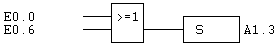 Verknüpft den Wert des Operanden und das VKE mit der Operation “Oder” und speichert das Ergebnis im VKE. Wenn das VKE zuvor abgefragt worden ist, wird der Wert des Operanden ohne Verknüpfung in das VKE kopiert.