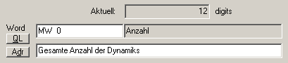 Der aktuelle Zustand eines Bits wird durch das kleine Quadrat angezeigt. Durch einen Klick können Sie den Zustand umschalten. Das hat natürlich nur Wirkung, wenn das Bit nicht woanders (in der Anlagen-Simulation oder im SPS-Programm) wieder neu beschrieben wird. Trotzdem kann diese Funktion gerade beim Erstellen einer Simulation sehr nützlich sein. Entsprechendes gilt für das Feld “Aktuell:” Durch einen Klick gelangen Sie in den Editiermodus und können den angegebenen Wert überschreiben.
