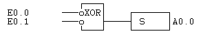 Verknüpft den negierten Wert des Operanden mit dem VKE nach der “Exklusiv Oder” Regel und speichert das Ergebnis im VKE. Wenn das VKE zuvor abgefragt worden ist, wird der Wert des Operanden ohne Verknüpfung ins VKE übertragen.